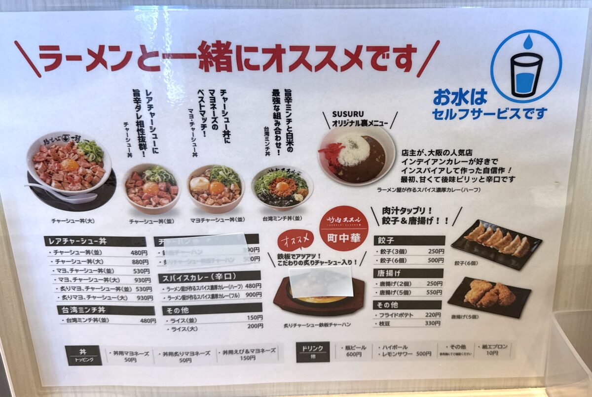 メインは鶏そばだけどその他メニューが豊富。