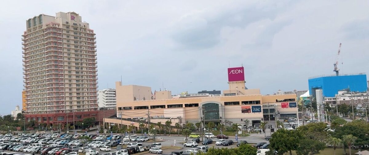 そして(アメリカンビレッジ側の)角部屋の場合はサンセットビーチとアメリカンビレッジの景色だけでなく、ホテル北側にあるイオン北谷までベランダから眺めることができる。