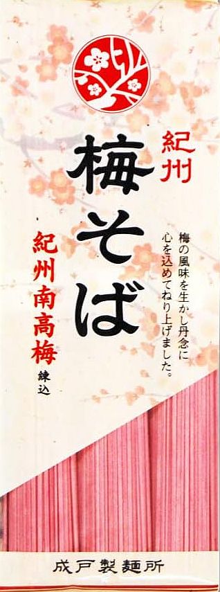 紀州南高梅の粉末を練りこんだ梅そば。5人前の乾麺とストレートめんつゆ個食スープ付。
