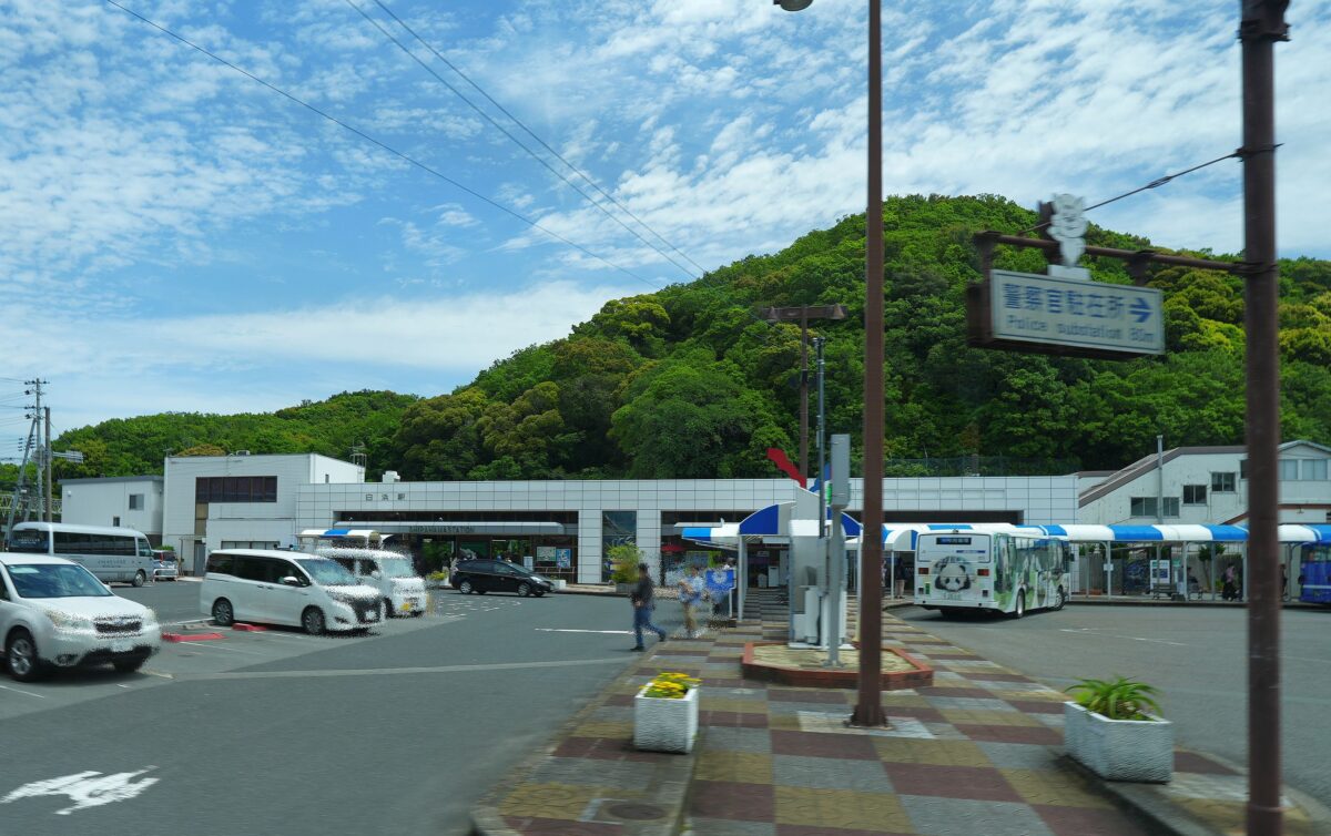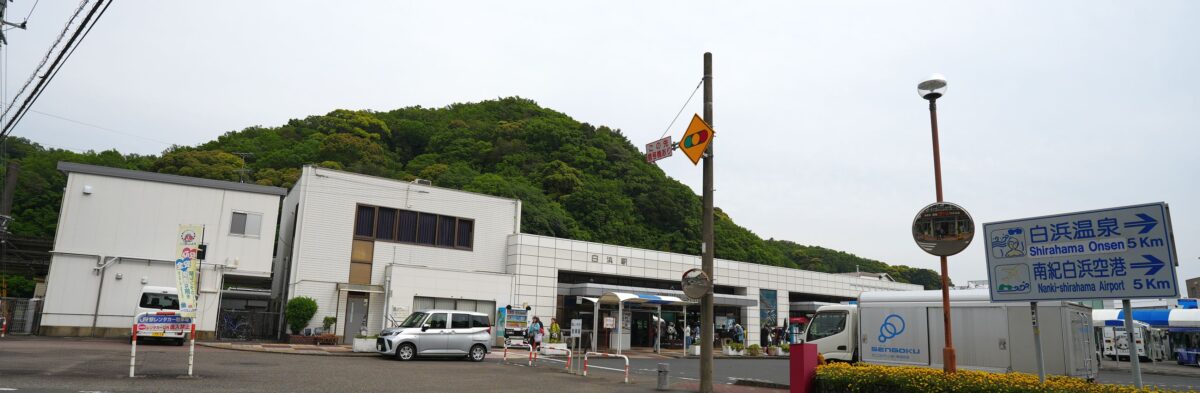 白浜駅で電車の待ち時間を利用して白浜駅の土産物店と食事場所を探る。