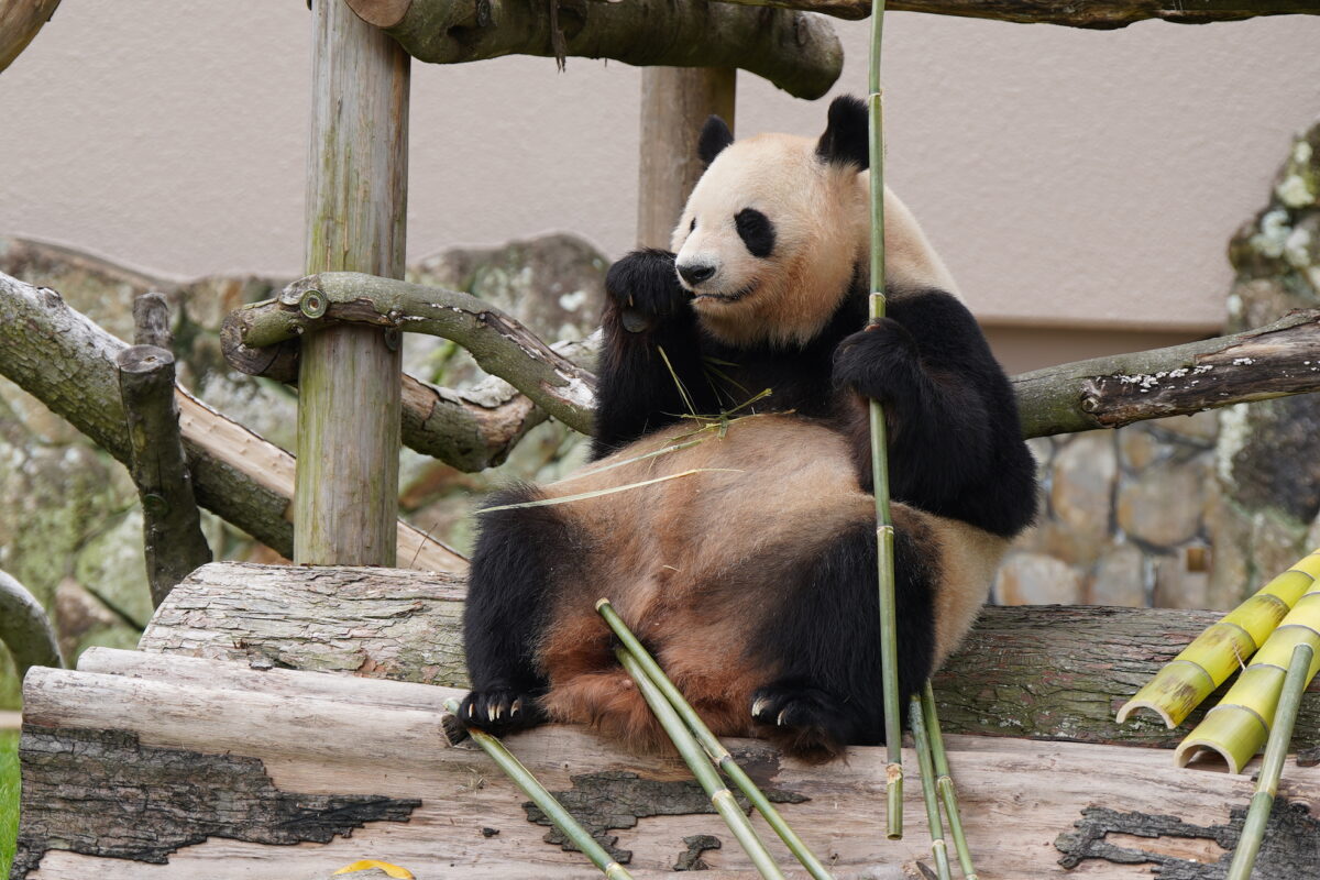 ・ジャイアントパンダ「良浜(らうひん)」「結浜(ゆいひん)」「彩浜(さいひん)」「楓浜(ふうひん)」帰国前の野外撮影(2025年5月12日)和歌山県白浜町,アドベンチャーワールド。