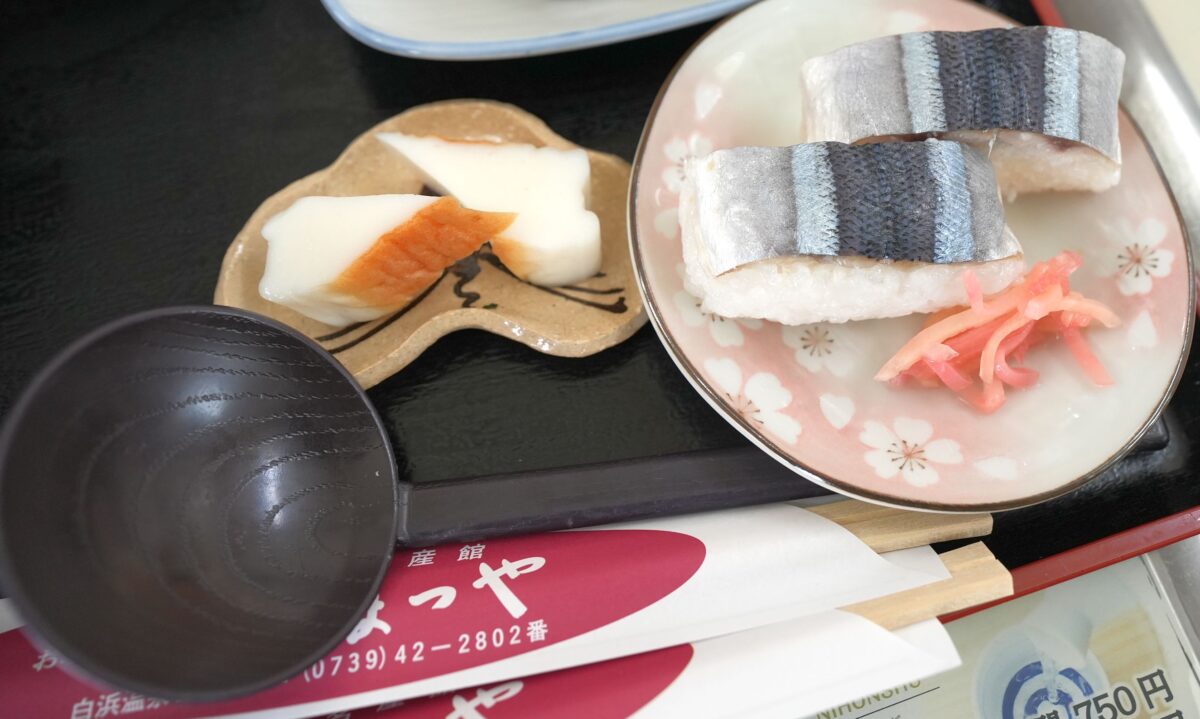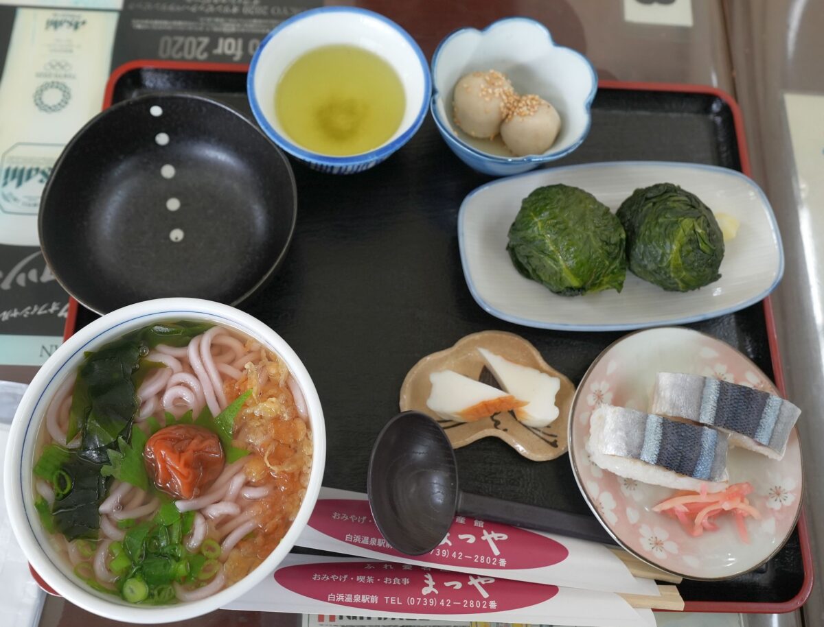 紀州うどん、めはり寿司、さんま寿司などがセットになっていて、私はともかく、当地(白浜駅)を初めて訪れた妻にとっては嬉しい食体験。