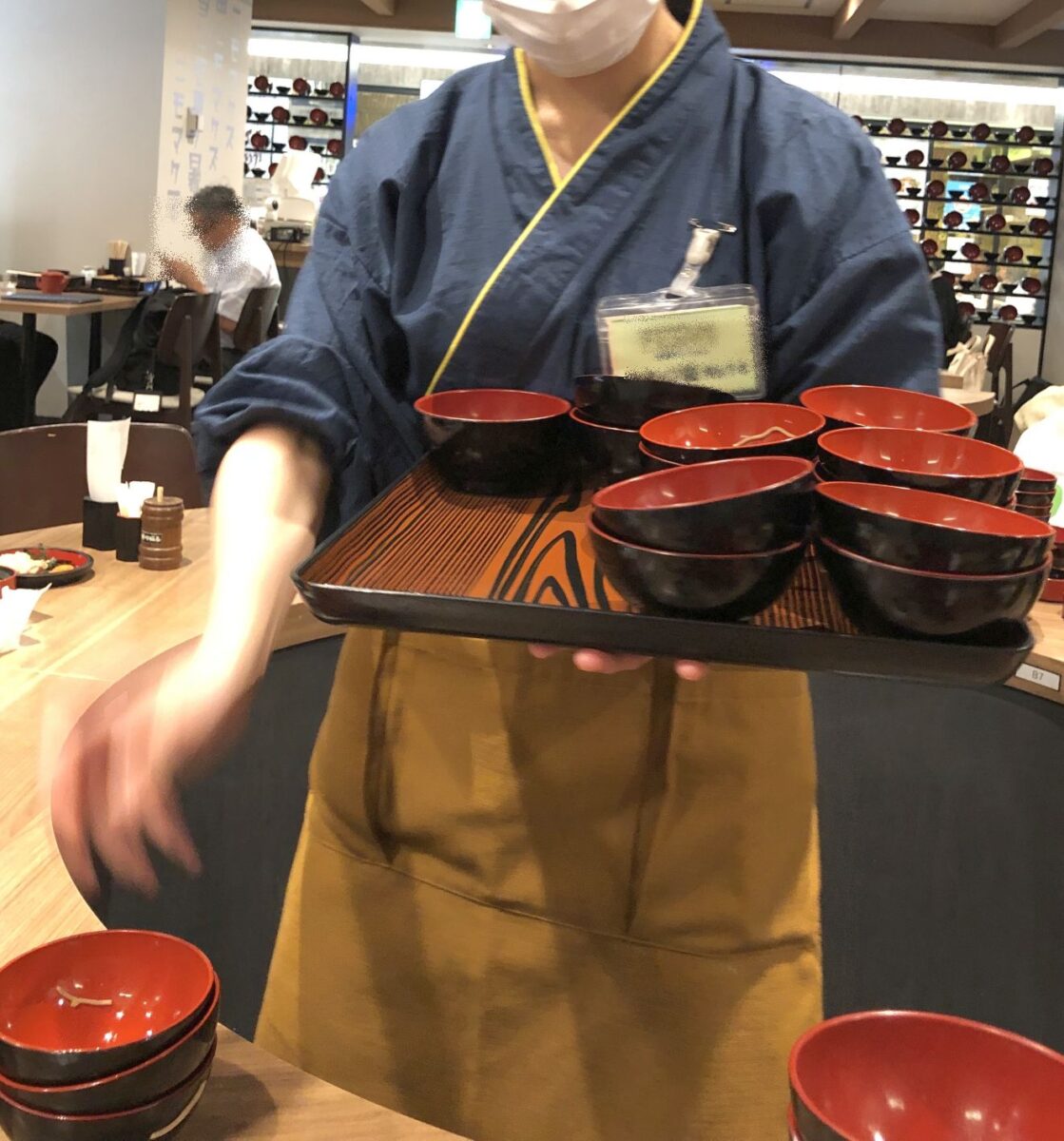まるでわんこそばのようだなと思ったものの、わんこそばは食べ終えたら次を注ぐということで、食物ロスは少ないと思われる。