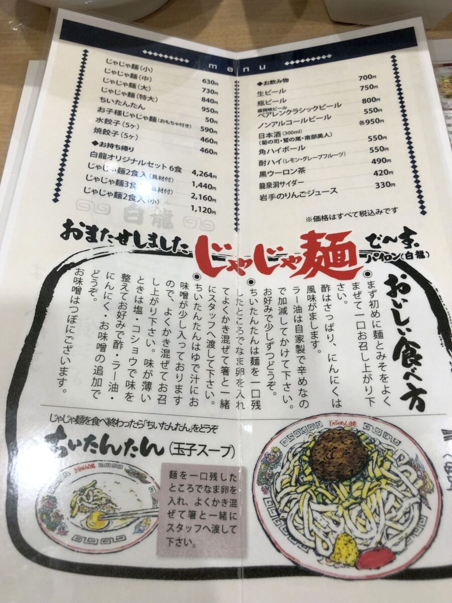 白龍は本店、分店、パルクアベニュー川徳店、そして今回食したフェザン分店と4店を盛岡市に出店している。