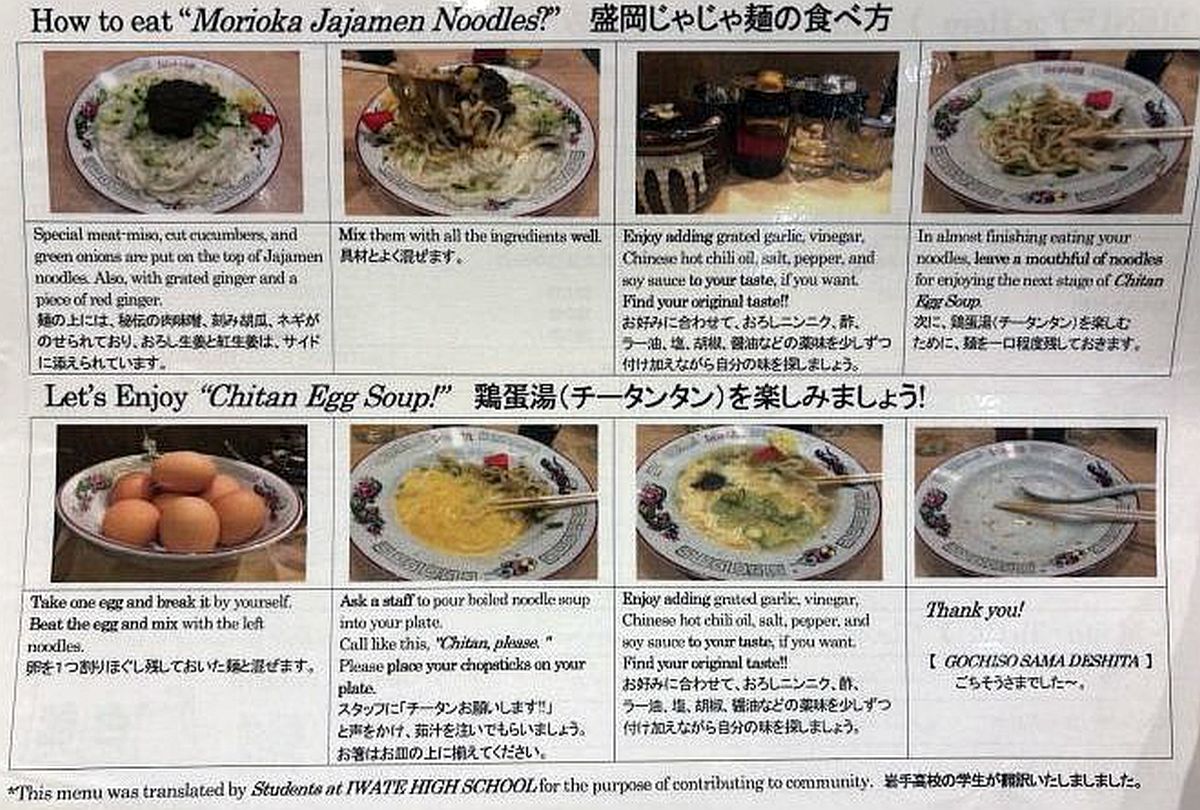 大陸旧満州での「炸醤麺(ジャージャーメン)」食体験を戦後、盛岡で展開したが、本来の炸醤麺の味を盛岡嗜好に調整して提供し名物として定着した。