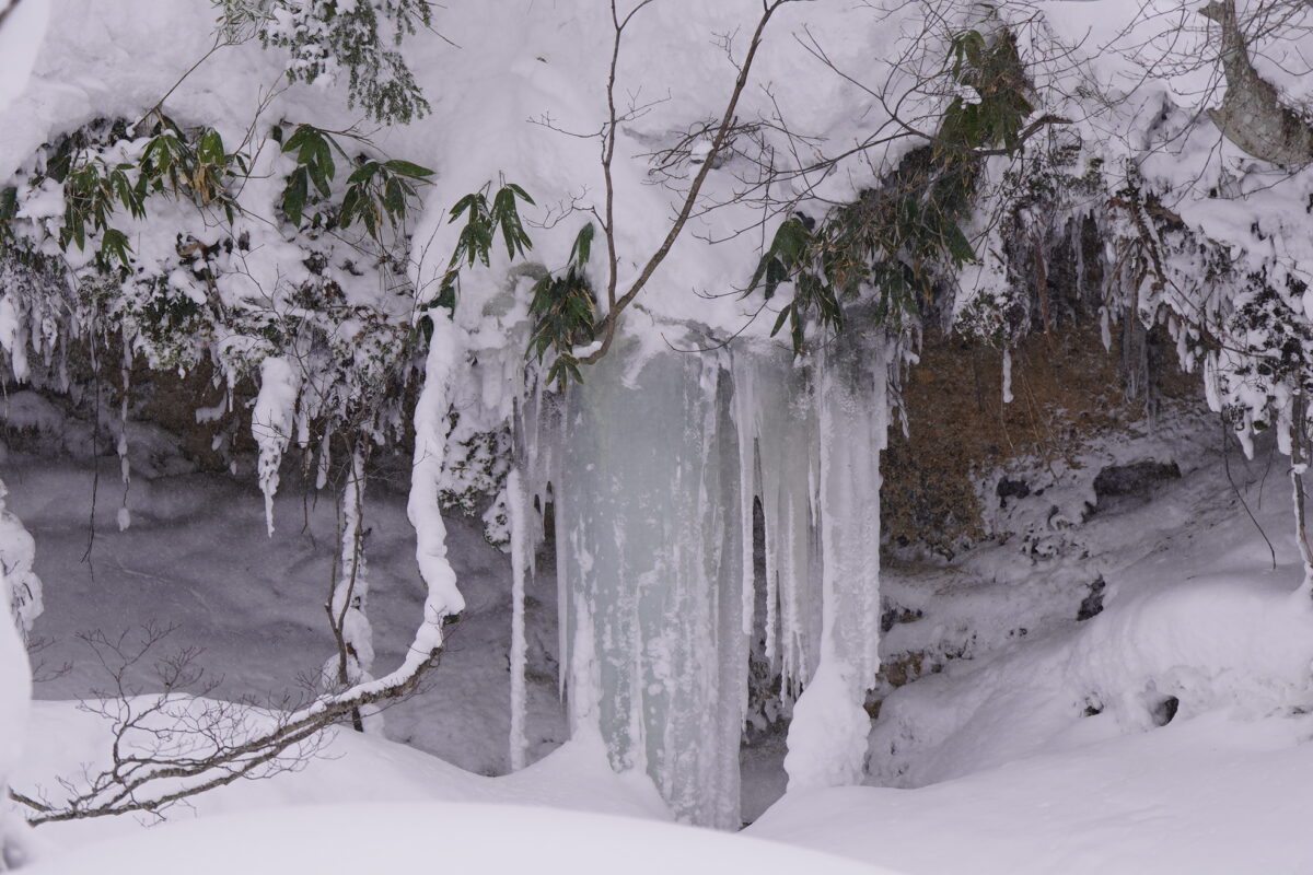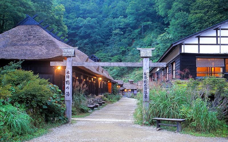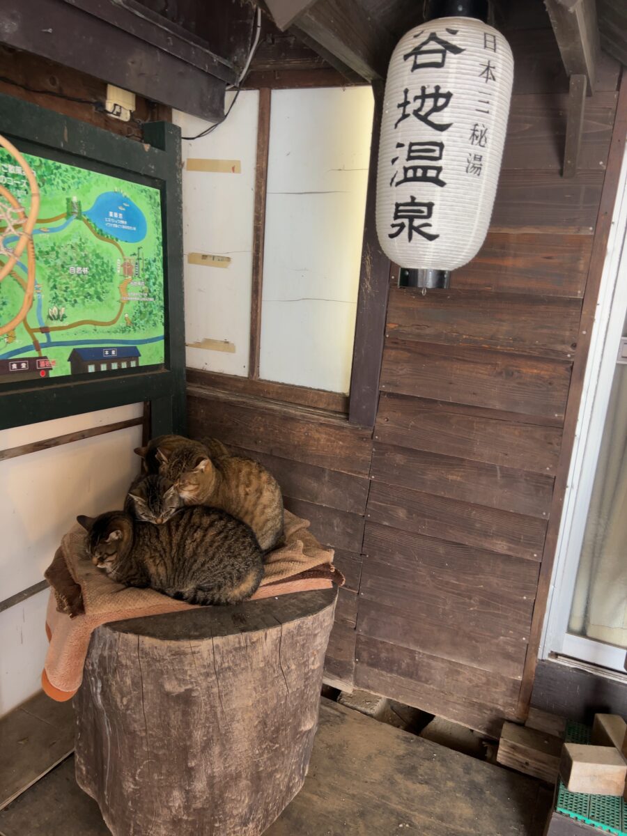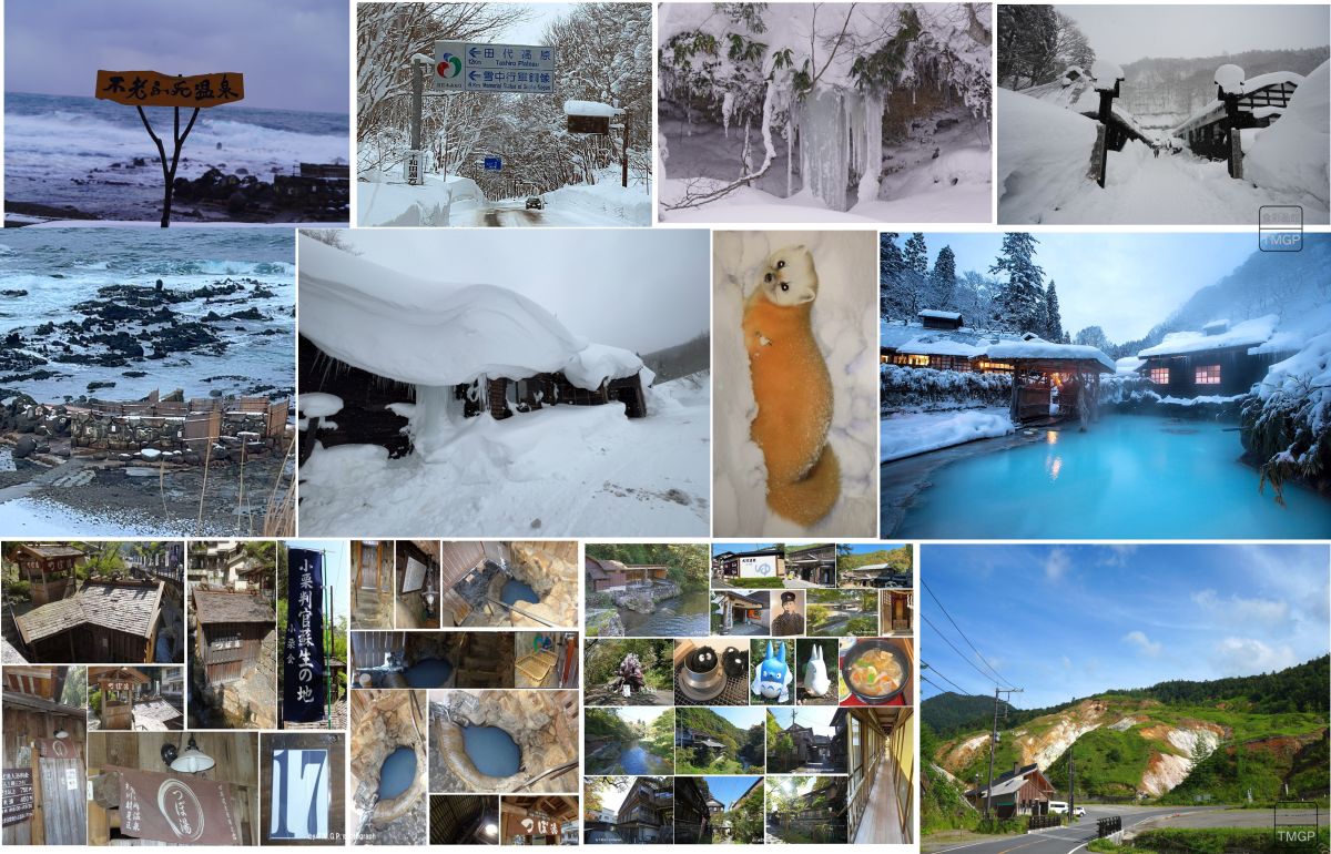 八甲田雪中行軍遭難地を眺めながらたどり着くまでが大変な大雪の山道が下界との結界となって「ここまて来た」を実感できる。日本三大秘湯に数えられる。たどり着いたら大雪でつぶされそうな旅館の風景。近くの酸ヶ湯温泉(日本一の積雪量記録地)よりも多いと言われる降雪量。足元湧出泉で空気に触れない新鮮な源泉が湯舟の中で沸きあがる・・を想像したが、残念ながら染み出ているようでプクプクを見ることはできない。しかも足元湧出は1か所の湯船のみで訪れる時間帯によっては男女入替によって入浴できないこともある。それでも雪が家屋を覆いつくし、氷柱が垂れ下がる景色は大雪の季節ならでは。4匹の看板猫が客を迎えてくれる。