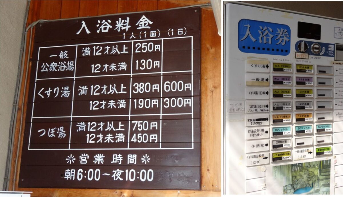 つぼ湯利用者は、湯の峰温泉公衆浴場の「一般湯」または「くすり湯」にも一回入浴できるが、源泉を加水無しで適温にした「くすり湯」がお勧め。