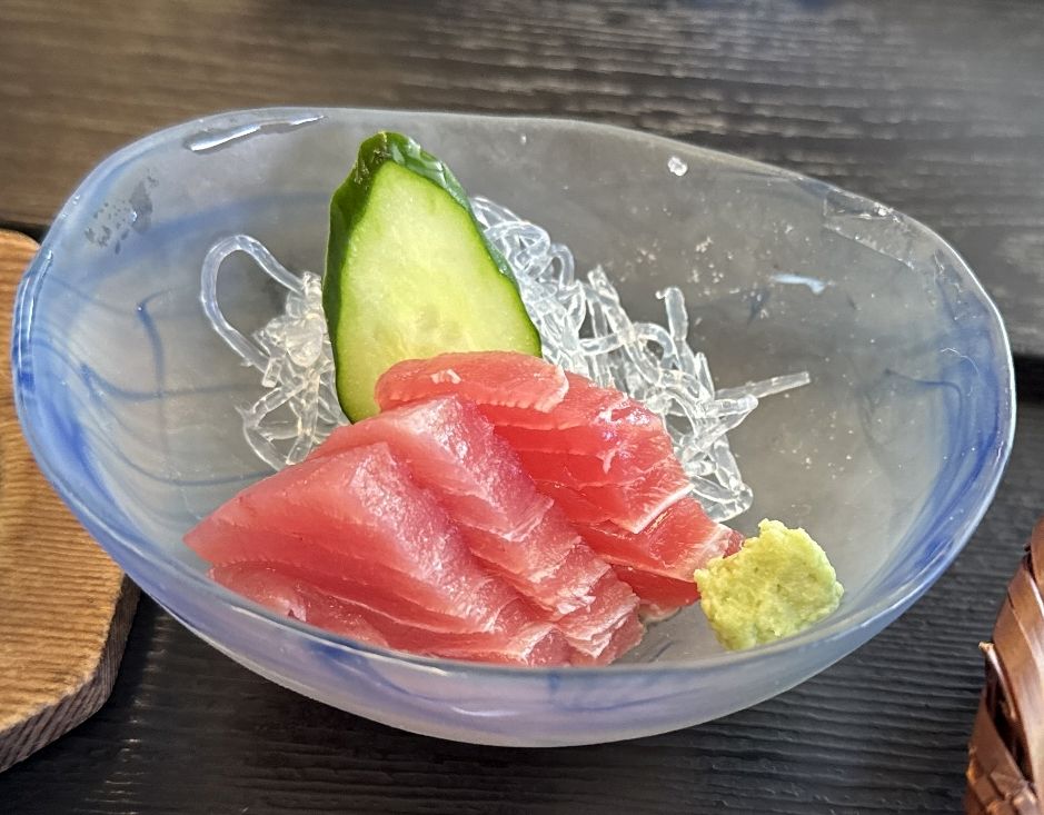 ただ、刺身が生キハダマグロで、スジが多い部位だったものの、味が良く好印象の部類。