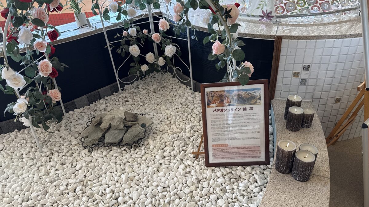 房内の説明文や石材の特徴から、使用石材は IKクリエイションのIKCラディウスパワーストーンと推定した。
