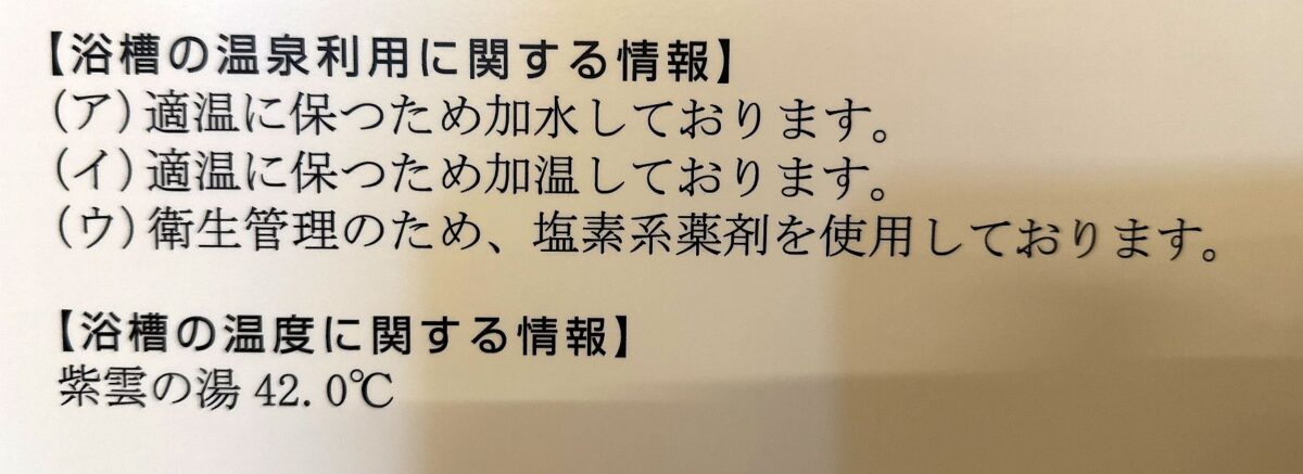 また、当施設は「加水・加温あり」だが「源泉かけ流し」と表示しているのもちょっと気になる。